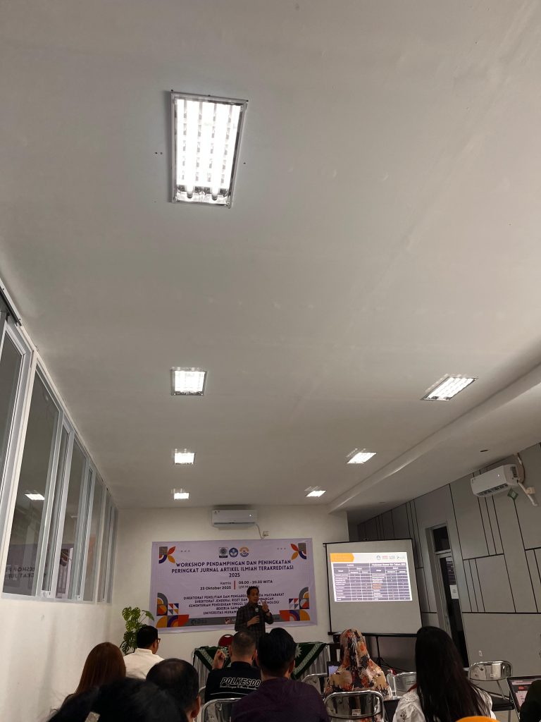 Kegiatan yang berlangsung pada Rabu, 23 Oktober 2025 ini diselenggarakan oleh Direktorat Riset, Teknologi, dan Pengabdian kepada Masyarakat (DRTPM), Kementerian Pendidikan, Kebudayaan, Riset, dan Teknologi, bekerja sama dengan UM Manado. Program pendampingan ini bertujuan untuk meningkatkan kapasitas dan kualitas publikasi ilmiah dosen di berbagai perguruan tinggi, khususnya dalam mendorong penulisan artikel yang layak terbit di jurnal bereputasi nasional dan internasional.