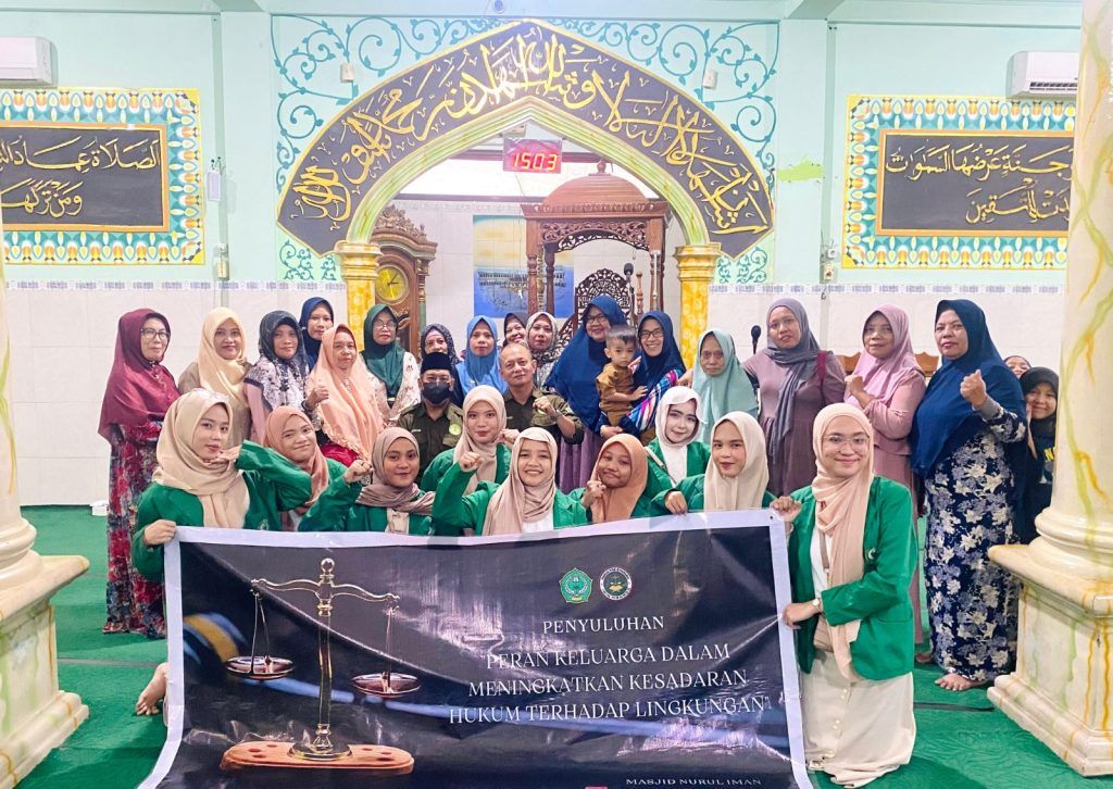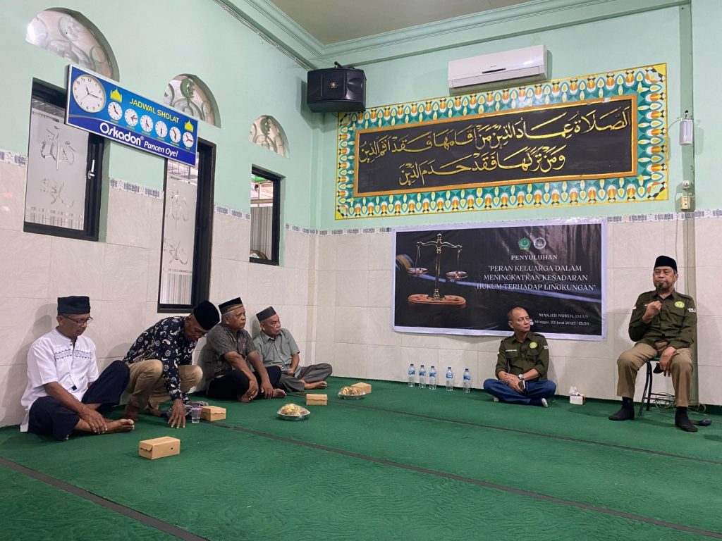 Kegiatan penyuluhan ini menghadirkan narasumber utama Prof. Dr. Naskur, M.HI., pakar hukum keluarga dan tokoh akademik yang memiliki reputasi luas dalam kajian-kajian hukum Islam. Dalam materinya, Prof. Naskur menjelaskan secara komprehensif bahwa keluarga merupakan fondasi utama dalam membangun kesadaran hukum. Ia menegaskan bahwa nilai-nilai kepatuhan, tanggung jawab, dan kepedulian terhadap lingkungan harus ditanamkan sejak dini melalui keteladanan orang tua. Beliau juga menyoroti bahwa banyak persoalan lingkungan muncul bukan semata karena lemahnya aturan hukum, tetapi juga karena kurangnya internalisasi nilai hukum dalam keluarga.